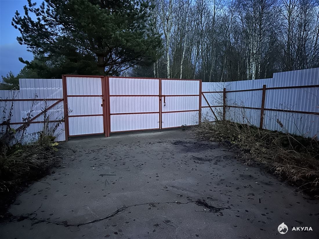 Участок огорожен , забор сплошной металический не столбах из металлических труб